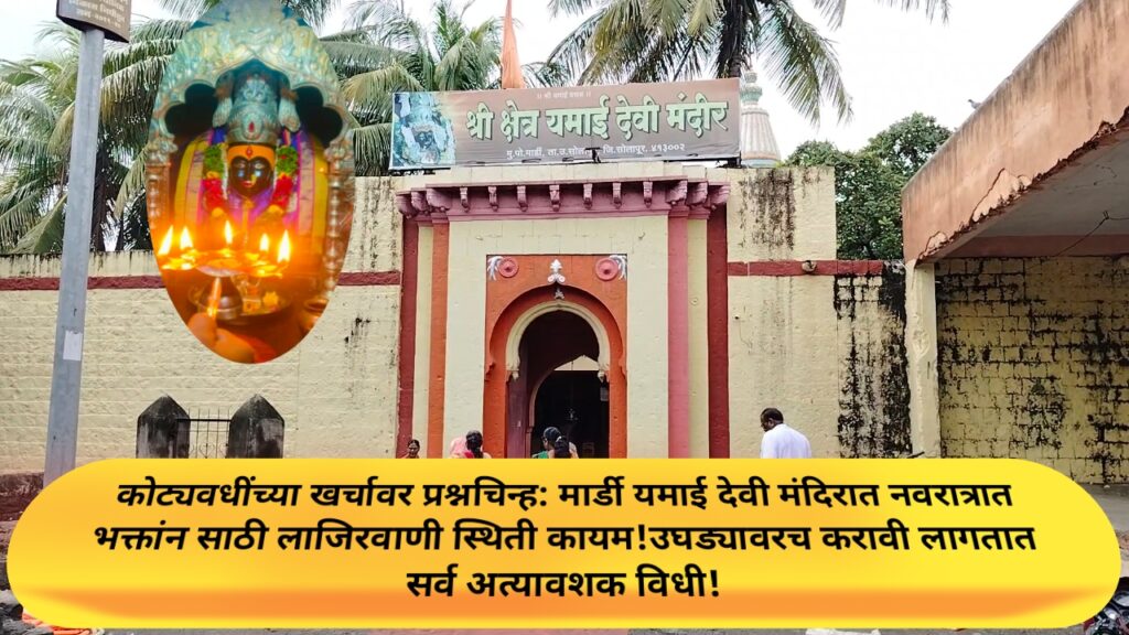 सोलापूर जिल्ह्यातील प्रसिद्ध श्री क्षेत्र मार्डी यमाई देवी मंदिरात भक्तांसाठीच्या मूलभूत सुविधेसाठी कोट्यवधी रुपये खर्च करून भक्तनिवास व शौचालय,स्वयंपाक गृह, बांधले पण त्याची स्थिती आज अत्यंत बिकट आहे की, गेल्या वर्षी नवरात्रात मंदिरात निवास करणाऱ्या भक्तांना उघड्यावरच शौचासाठी बसण्यासारखे अत्यावश्यक कृत्याला सामोरे जावे लागले होते. ही अत्यंत लाजिरवाणी आणि बिकट परिस्थिती पुन्हा येणाऱ्या नवरात्रात टाळली पाहिजे, अशी मागणी भाविक भक्तगण करत आहेत.