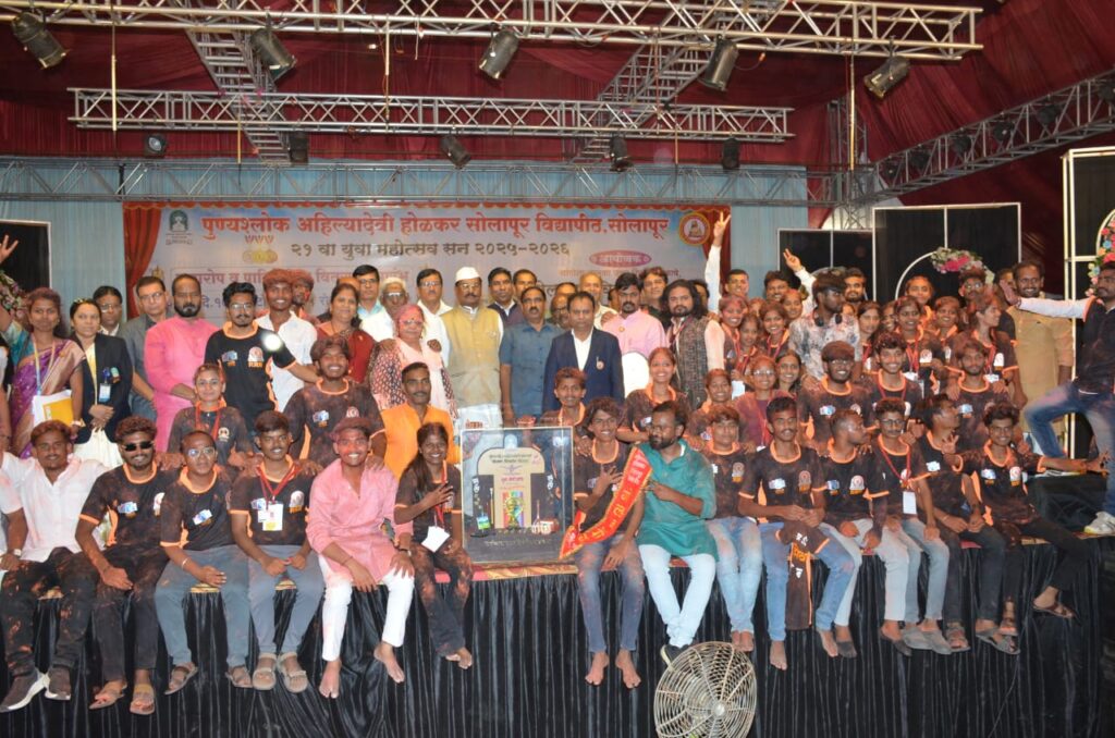 सांगोला येथील सांगोला महाविद्यालय, सांगोला येथे पुण्यश्लोक अहिल्यादेवी होळकर सोलापूर विद्यापीठाचा यंदाचा 21 वा युवा महोत्सव मोठ्या उत्साहात पार पडला. शुक्रवारी पारितोषिक वितरण झाले. समारोप समारंभास ज्येष्ठ सिने अभिनेते मकरंद अनासपुरे यांची प्रमुख उपस्थिती होती. विद्यापीठाचे कुलगुरू प्रा. प्रकाश महानवर यांच्या अध्यक्षतेखाली पारितोषिक वितरणाचा कार्यक्रम झाला. यावेळी प्र-कुलगुरू प्रा.लक्ष्मीकांत दामा, सांगोला तालुका उच्च शिक्षण मंडळाचे अध्यक्ष बाबुराव गायकवाड, सचिव उदयबापू घोंगडे, विद्यापीठाचे प्रभारी कुलसचिव डॉ. अतुल लकडे, महाविद्यालयाचे प्रभारी प्राचार्य डॉ. सुरेश भोसले, व्यवस्थापन परिषदेचे सचिन गायकवाड, डॉ. प्रभाकर कोळेकर, डॉ. वीरभद्र दंडे, राष्ट्रीय सेवा योजनेचे संचालक डॉ. राजेंद्र वडजे, महोत्सव समिती सदस्य यांच्या प्रमुख उपस्थितीत पारितोषिक वितरणाचा कार्यक्रम पार पडला. विद्यार्थी विकास विभागाचे संचालक डॉ. केदारनाथ काळवणे यांनी प्रास्ताविक व स्वागत केले.